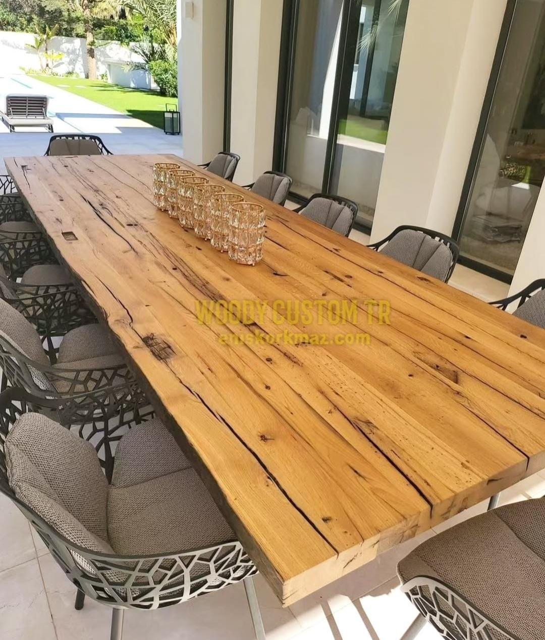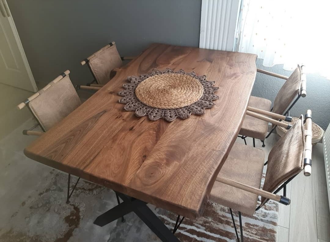 Bu menüdeki doğal ahşap masa ve diğer tüm masif ürünler imal edip, müşterilerimize teslim ettiğimiz ürünlerdir